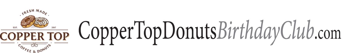As a Birthday Club member you will receive an email on your birthday announcing a special surprise. Just present the email at Copper Top Donuts & Coffee to enjoy your birthday surprise.